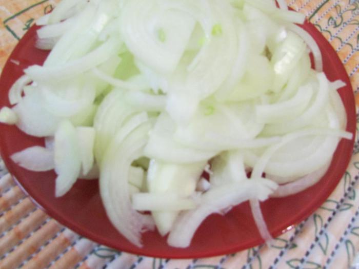 Лук нарезать полукольцами.
