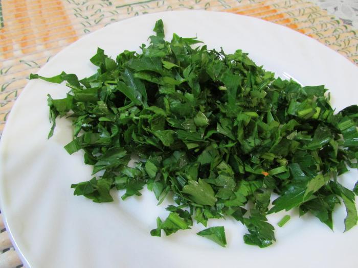 Этим временем мелко порубить петрушку.
