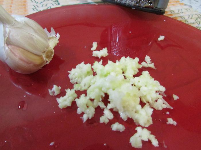 Выдавить через пресс чеснок.