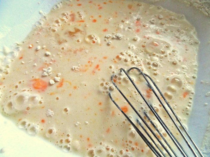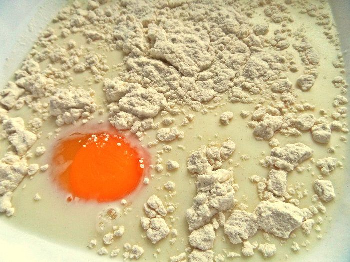 Вбиваем в молоко комнатной температуры яйцо с сахаром и солью.