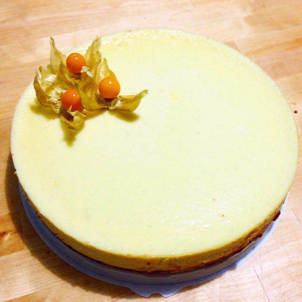 После выпекания приоткрываем духовку и даем остыть чизкейку до комнатной температуры.
