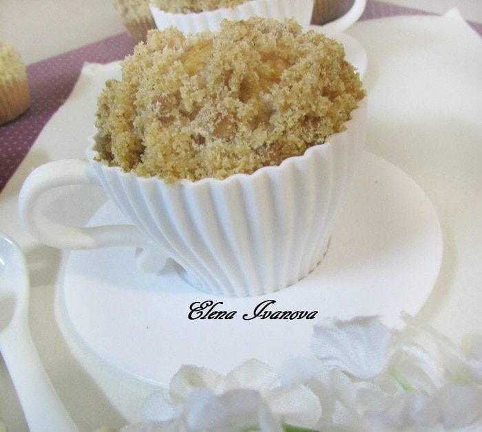 Сверху посыпать штрейзелем. Отправить в разогретую духовку 180°C. Выпекать 30-40 минут, до золотисто-коричневого цвета. Готовность проверить деревянной шпажкой.