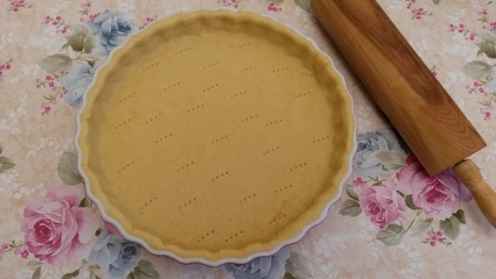 Высыпаем крошку на стол, добавляем ложку холодного молока, собираем тесто в шар. Растираем тесто основанием ладони движением от себя 4-5 раз. Тесто должно стать однородным. Выкладываем тесто в пищевую пленку. Убираем в холодильник на полчаса.