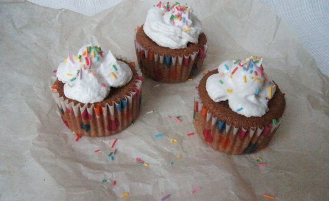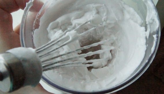 Готовим заварную меренгу для украшения наших капкейков. Поставить на огонь сахар с водой. Когда закипит, убавить и варить 6-8 минут. Если у вас есть термометр, то измерьте температура должна быть 120°С. Если нет, то проверьте как я. Опустите ложку, которой вы мешали в холодную воду на полминутки. Если сироп на ложке стал твердым, он готов.
