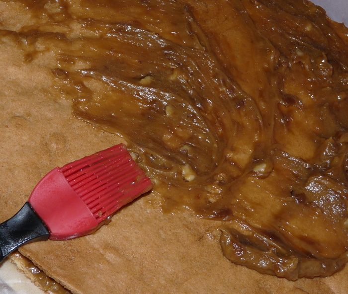 В глубокую миску выложить 2 яйца и сахарный песок, сливочное масло. Данное поставить на паровую баню, постепенно перемешивая, до полного растопления, потом добавить мёд, и не переставая мешать, убрать с бани, далее в чайную ложку соды погасить уксусом и добавить в тесто. После постепенно добавить муки и 3-и столовые ложки сметаны, всё это перемешивать до однородной массы. И ещё раз тщательно всё перемешать. Полученное тесто поставить в холодильник для застывания на время.