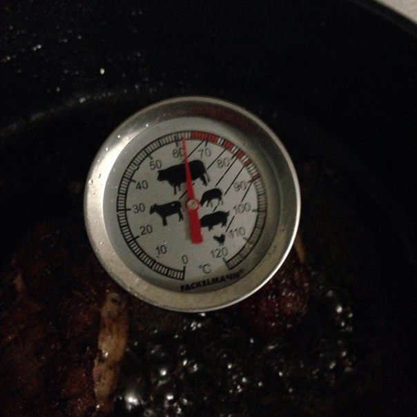 Если у вас нет специального термометра, то тогда жарим утку по 7 минут с каждой стороны и по 3 минуты по бокам.