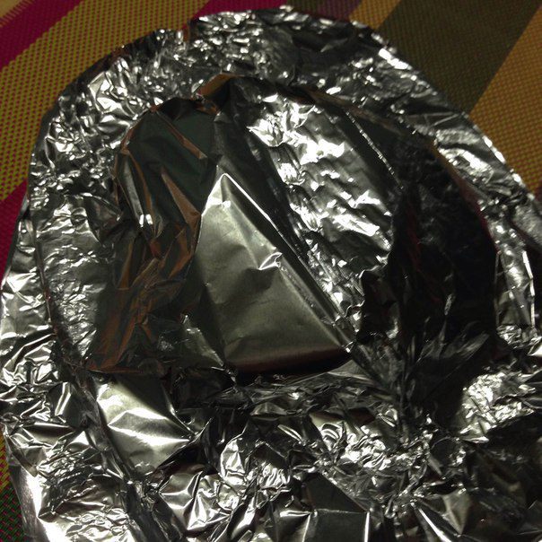 После того как грудка пожарилась, снимаем ее со сковороды на деревянную доску и накрываем фольгой. Чтобы грудка отдохнула.