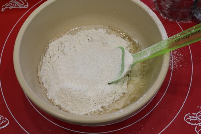 Просейте муку постепенно (у меня немного осталось).