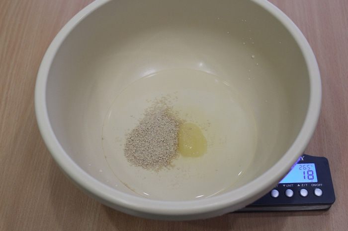 В теплую воду добавьте мед и дрожжи, дайте немного постоять.