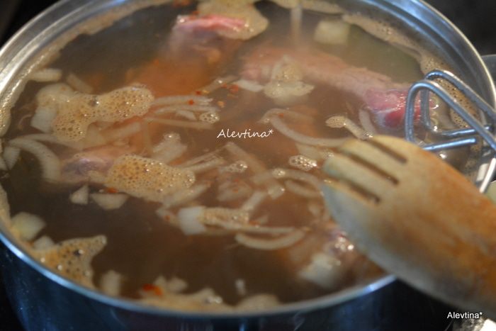 Выложить ребрышки в кипящий маринад и готовить примерно 1 час.