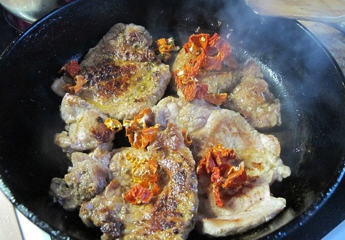 Обвалять мясо в смеси и жарить на горячей сковороде до золотистой корочки.