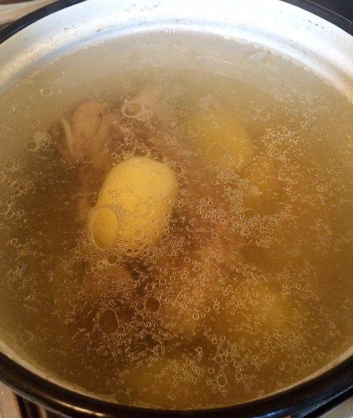 После 40 минут томления бульона вынимаем мясо, чтобы остудить и разделать на кусочки.