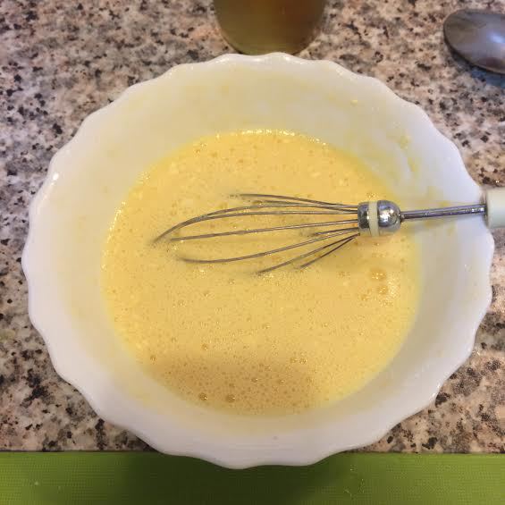 Яйца хорошо взбить венчиком, добавить 1 ст.ложку муки и уксус. Еще раз перемешать.