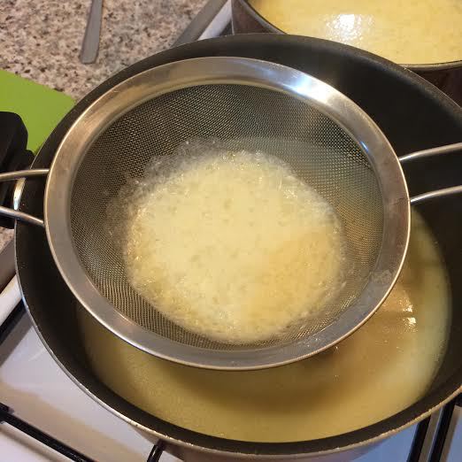 Берем мелкое сито и начинаем постепенно заливать бульоном курицу. Лук надо хорошо перетереть ложкой.
