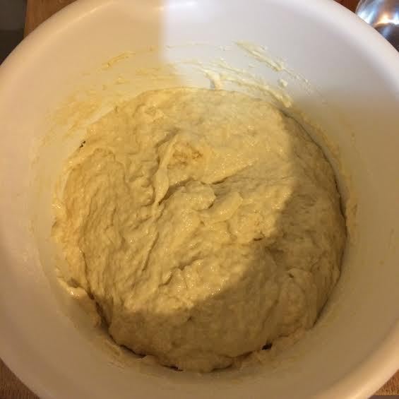 Добавить муку, соль и замесить тесто (муки может понадобиться чуть больше). Накрыть полотенцем и поставить в теплое место на 30 минут.