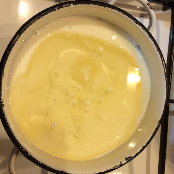 Кефир с маслом слегка подогреть.