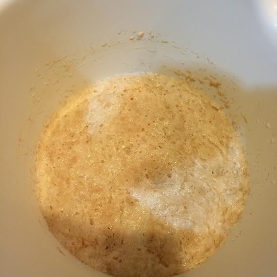 Опара: молоко слегка подогреть. Добавить сахар и дрожжи, перемешать. Накрыть полотенцем и поставить в теплое место на 10-15 минут.