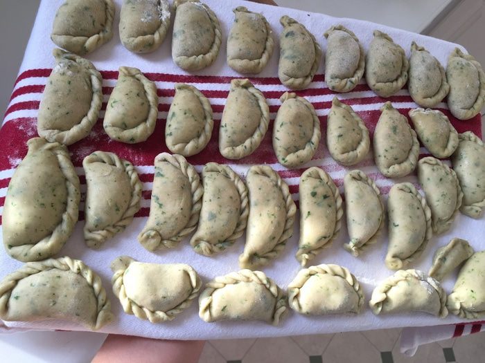 Вырезаем кружочки, сверху фарш и лепим пельмени/вареники/равиоли.