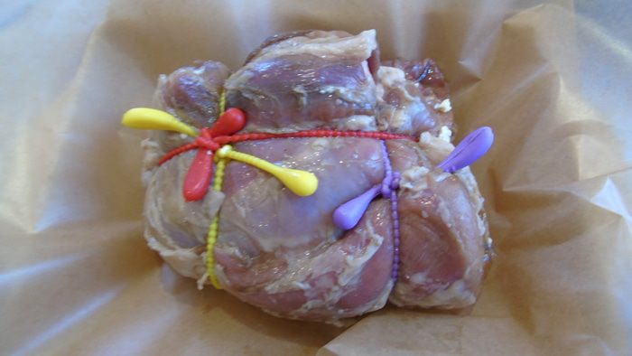 Заворачиваем в пергамент и отправляем в духовку, разогретую до 200°С на 30 минут, затем уменьшаем температуру до 180°С и еще запекаем 1,5 часа.