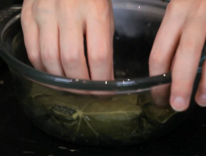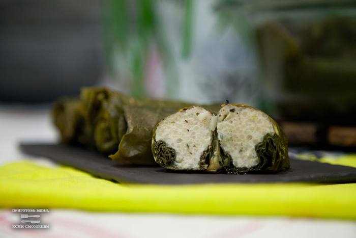 2. Готовить долму на плите: для этого сложить её в сковороду, залить"бульоном", накрыть крышкой и поставить на средний огонь (4 уровень мощности, если плита электрическая) на 1 час.