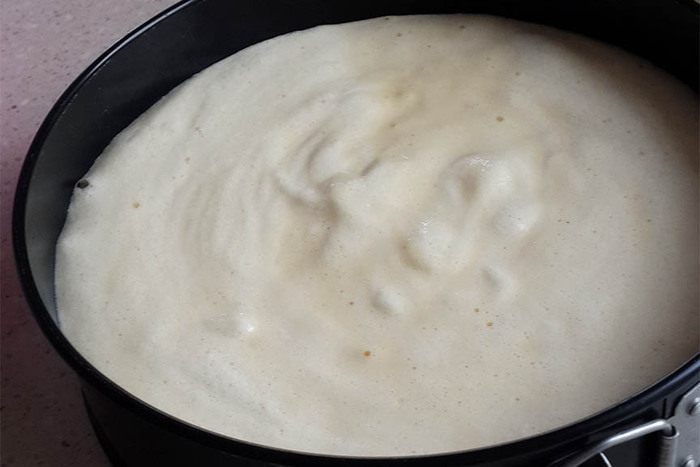 Вылить в разъемную форму, устланную пергаментом. Выпекать при 180°C около 40-50 минут.
