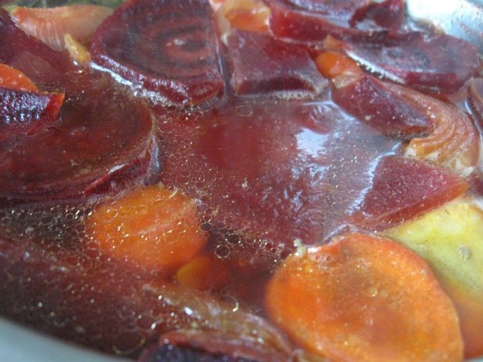Поставить на средне-сильный огонь. После закипания снять пену, посолить, убавить огонь до минимума, оставить вариться на 3 часа 15 минут.