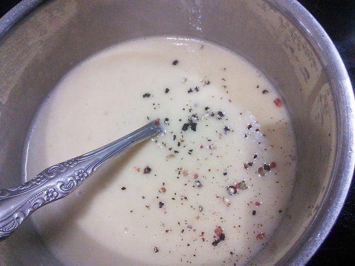 В это время можно сделать сливочный соус к мясу. Его образуется при томлении мяса, несмотря на малую температуру, довольно много. Слейте его в отдельную кастрюлю, добавьте сливки. Уварите на маленьком огне или загустите крахмалом.