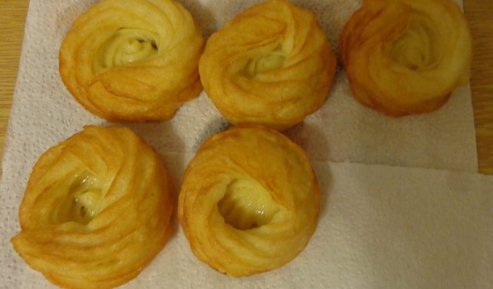 Готовые печенья вынуть и положить на бумажную салфетку, чтобы удалить лишний жир. Остудить.