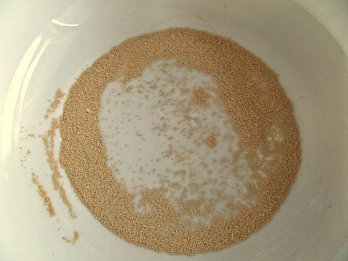 Дрожжи развести в тёплой воде.