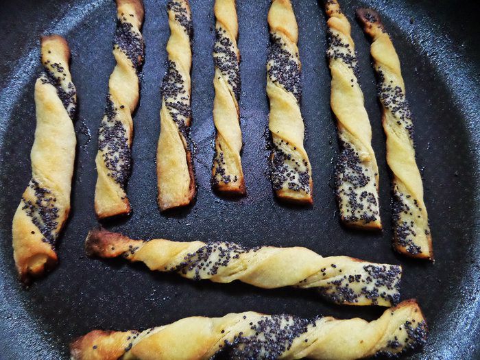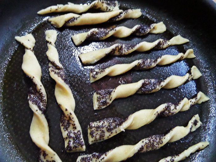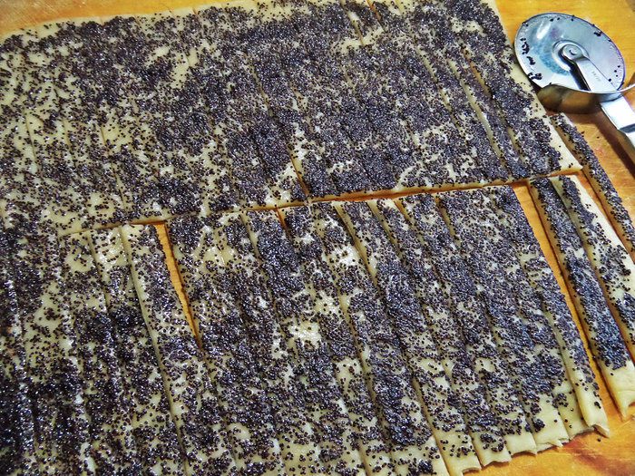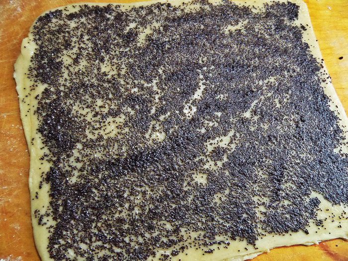 Раскатать в последний раз и теперь уже нанести маковую начинку.