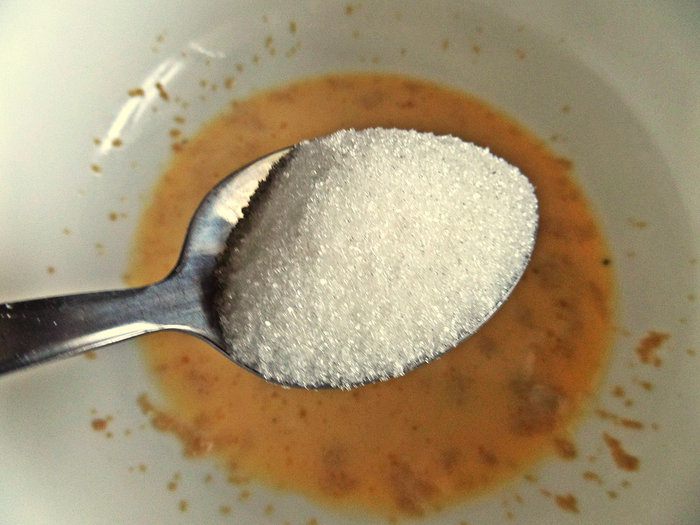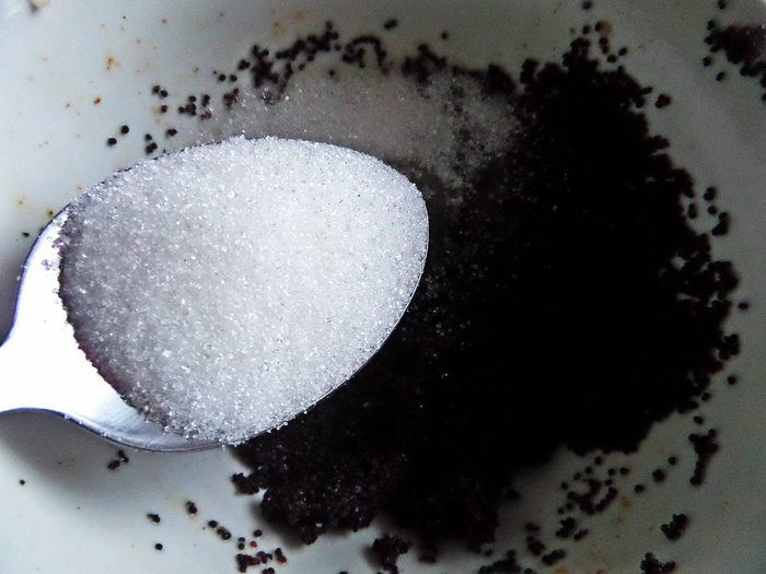 Слить воду через сито, добавить сахар.