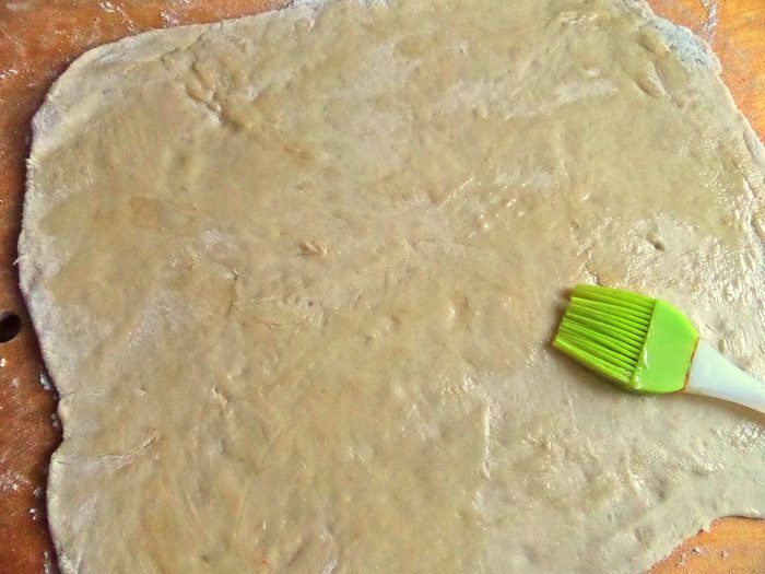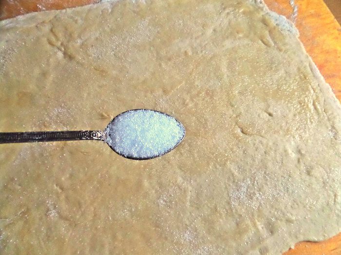 Раскатать, снова смазать, посыпать сахаром.