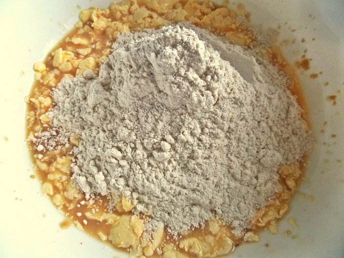 Всыпаем партиями просеянную муку.