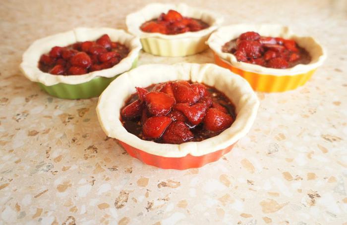Предлагаю вам порадовать своих любимых мини-пирогами, но с начинкой, которая на первый взгляд покажется странной. Ведь согласитесь, не так часто мы добавляем в клубничные начинки бальзамический уксус) И я подумала, а почему бы и не попробовать! Оказывается клубника и бальзамический уксус отличный дуэт. Благодаря добавлению меда, а не сахара, начинка не сладкая и легкая на вкус. А сочетание клубнично-бальзамической начинки с нежней и хрустящей корочкой из слоеного теста становится идеальным!