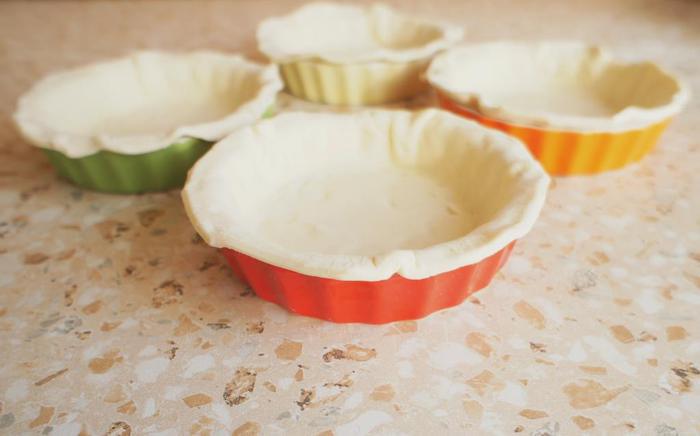 Выложить тесто на дно формочек для запекания в соответствии с их диаметром.