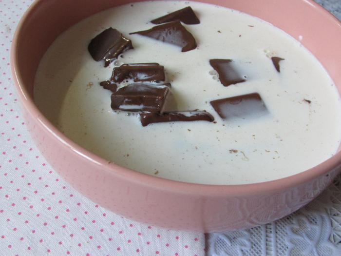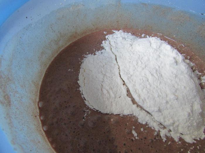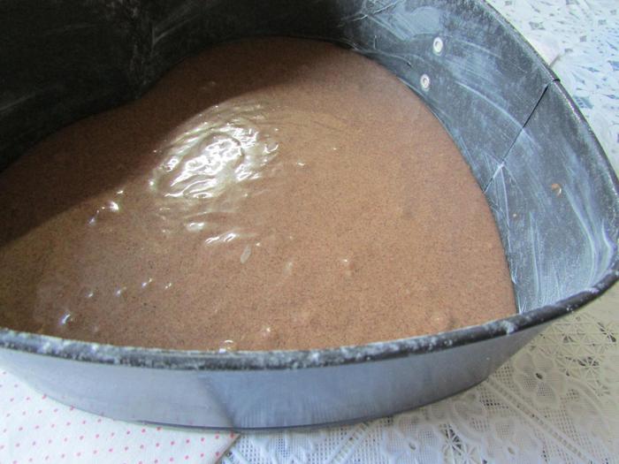 Приготовить начинку. Шоколад наломать на мелкие кусочки. Залить горячими сливками. Растворить в них шоколад. Масса будет жидкой. Остудить её на столе, затем отправить в холодильник. Пока готовится пирог, масса в холодильнике станет погуще, как хорошая сметана.
