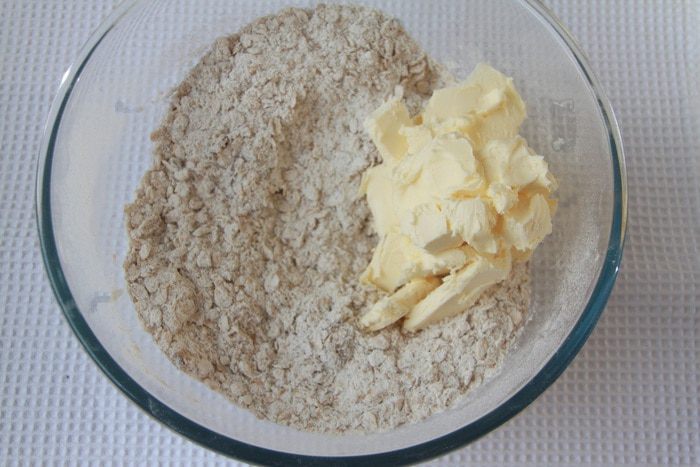 К сухой смеси добавить 1 стакан сливочного масла (это примерно 180-200 г, т.е. пачка), соединить.