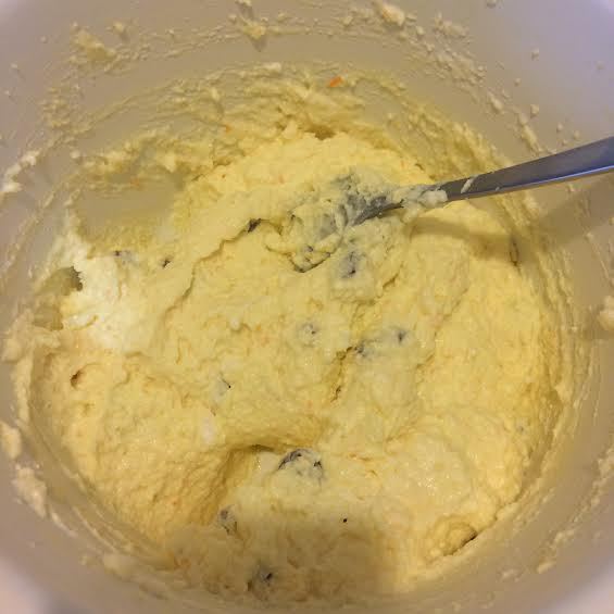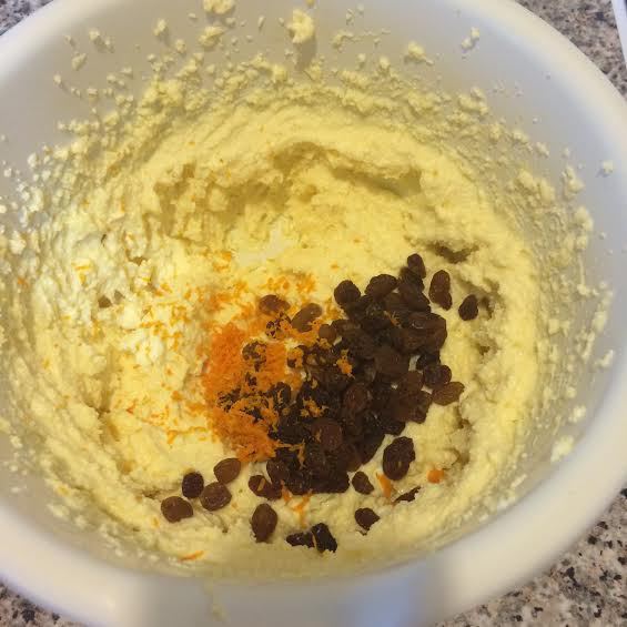Добавляем изюм и цедру апельсина, перемешиваем.