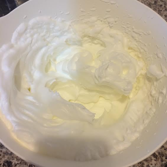 Осторожно вводим белки в творожную массу. Аккуратно перемешиваем ложкой.