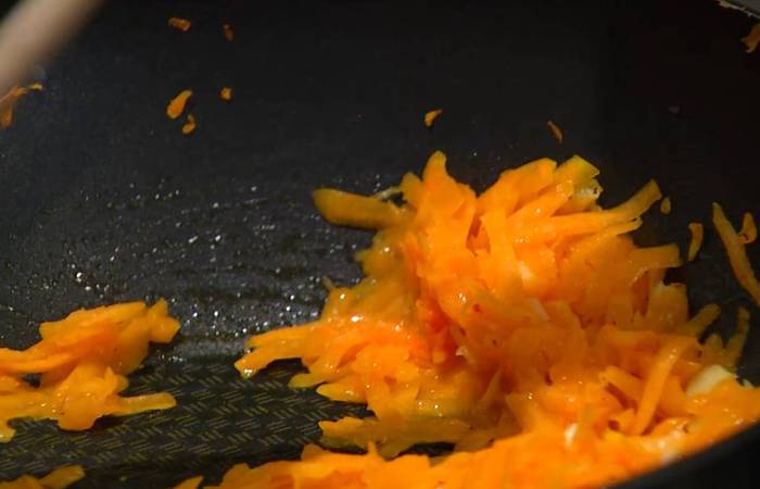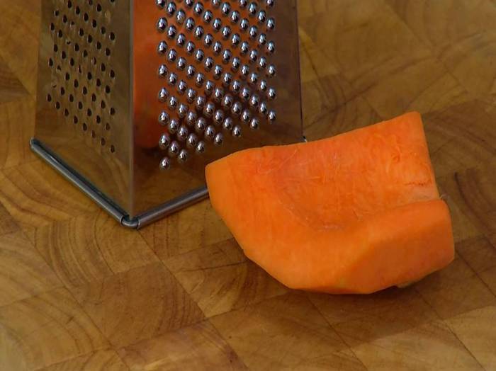 Тыкву почистить и натереть на крупной терке.