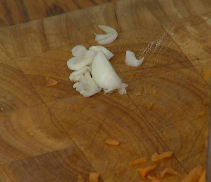 Чеснок почистить и мелко порубить.