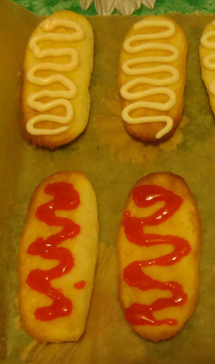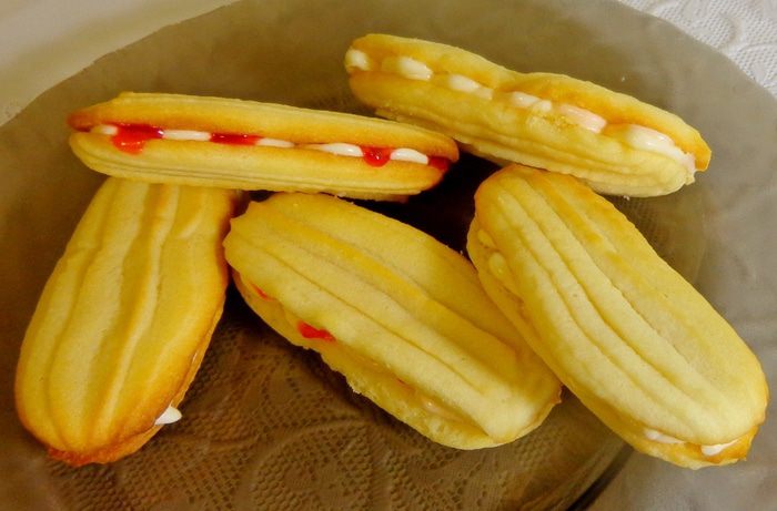 На половину печений выложить из кулька крем, на другую половину — джем.
