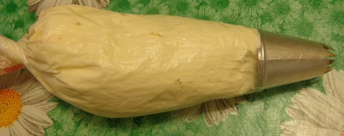 Выложить тесто в кулинарный мешок с насадкой звездочка.