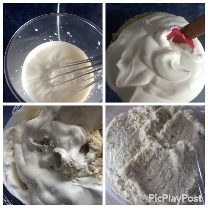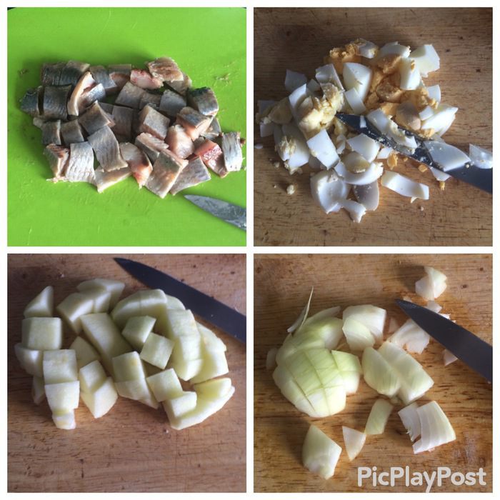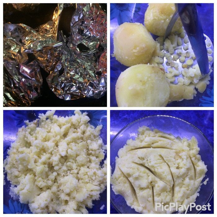 Полученную массу выкладываем к картофельному пюре и тщательно перемешиваем, я воспользовалась погружным блендером.