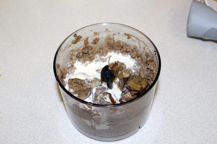 Переложить все в чашу блендера, добавить сливки и хорошо взбить до однородности.