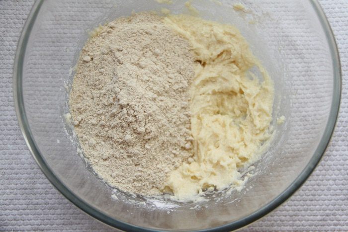 Добавить кедровую муку к основной смеси.