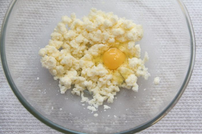 Масло слегка взбить с сахарным песком, добавить 1 яйцо.