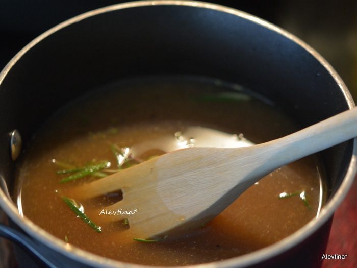 Вылить на сковороду мясной бульон, горчицу, сахар и соусы, розмарин свежий 1 ст. л. и тимьян. Готовим 2-3 минуты или до растворения сахара и полного смешивания. Перелить это все в медленноварку. Добавить розмарин по желанию.