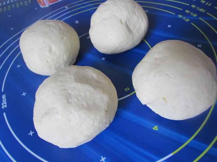 Тесто разделить на 4 равные части и отправить в холодильник на 2 часа.