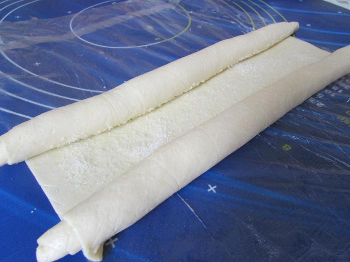 Свернуть тесто. Сначала с одной стороны до середины. Затем с другой стороны (не туго!).